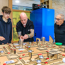 | Met de Magnex knikkerbaan oefenen leerlingen van het vso in de STO-regio Zuidoost-Brabant, vaardigheden als: probleem oplossen, logisch nadenken, nieuwe ideeën bedenken, doorzetten, goed opletten en samenwerken. Peer Neggers is de grote promotor van deze vinding. |
