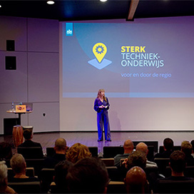 | Tijdens de plenaire afsluiting vertelde Laura Veerman, coördinator STO van het Ministerie van OCW, over het belang van Sterk Techniekonderwijs voor de toekomst van het vmbo. De toekomst biedt uitdagingen en kansen, en dit kunnen we alleen: Samen! |